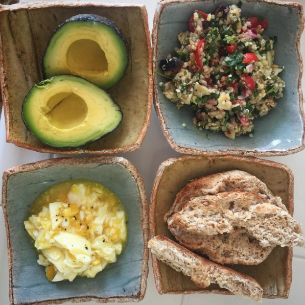 Cook and eat the first meal of the day. This could be mussels with tomato, fennel, and white wine, or it could be soft-boiled eggs with avocado, sprouted wheat toast, and French butter. I drink black coffee with egg yolk, coconut oil, and ghee.