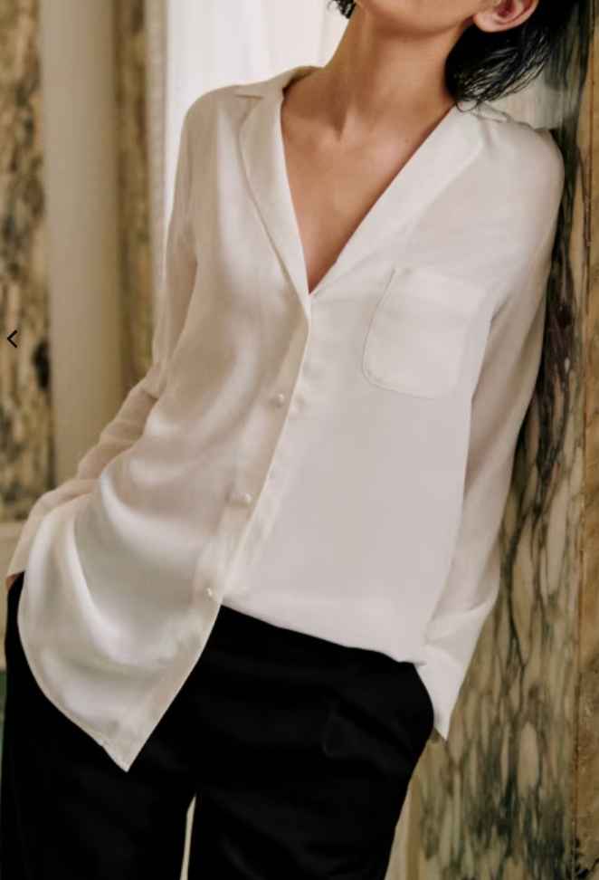 Why we love it: This beautiful shirt is 100% silk with a relaxed collar and smooth feel.