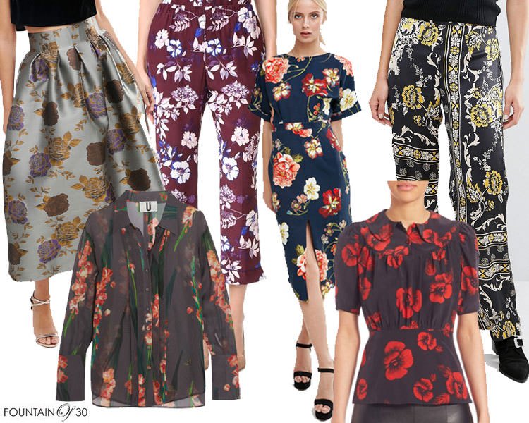 1. Fall Florals: Whether bold and bright, or delicate and dainty, balance this look with a block pump or a boot.