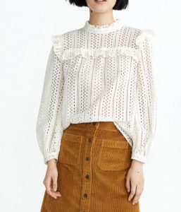 Madewell Eyelet Mockneck Ruffle Top, $92
