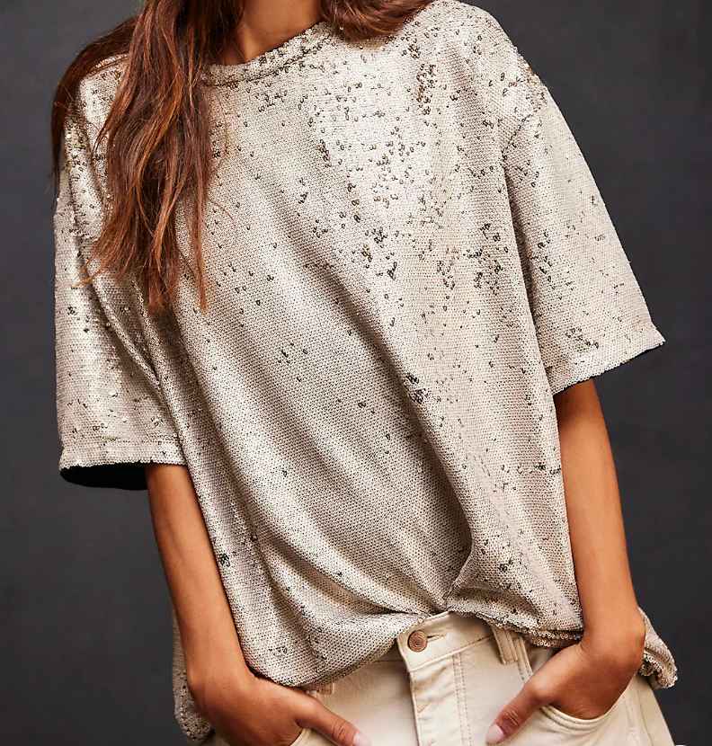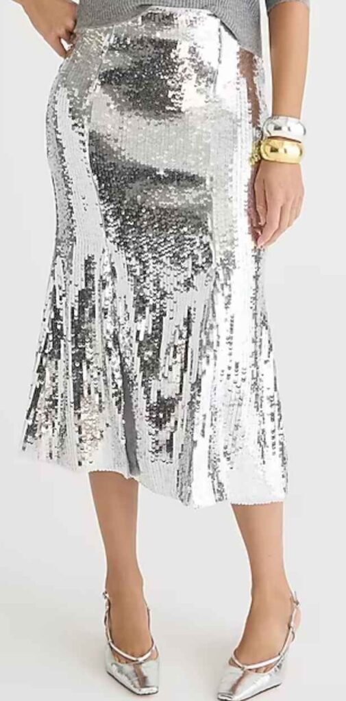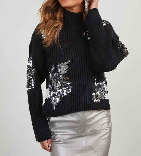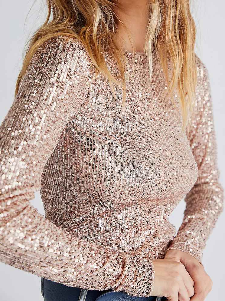 If you’re on the shy side, stick to using sequins as an accent, like the sheer Alice + Olivia blouse and long-sleeve Donna Karan blouse below. These are excellent suggestions for the professional. The sweater and Gibson top can be paired with jeans or leggings, and throw on a chunky sneaker.