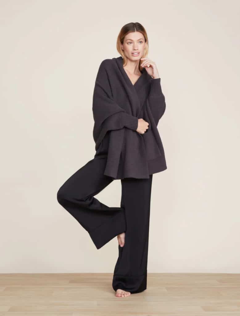 Not only do layers add interest, but they are also a great way to add a shot of color to an otherwise monochromatic moment. We can’t get enough of the Barefoot Dreams CozyChic® Blanket Wrap for its beautiful drape and snuggly softness. Thrown over your favorite matched set, you’ll be all wrapped up and ready to go wherever the day takes you.