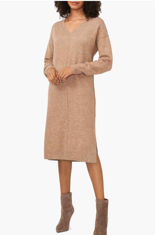 Why we love it: Exposed seams trace the gently relaxed silhouette of a sweater dress that’s ready to up the cozy factor.