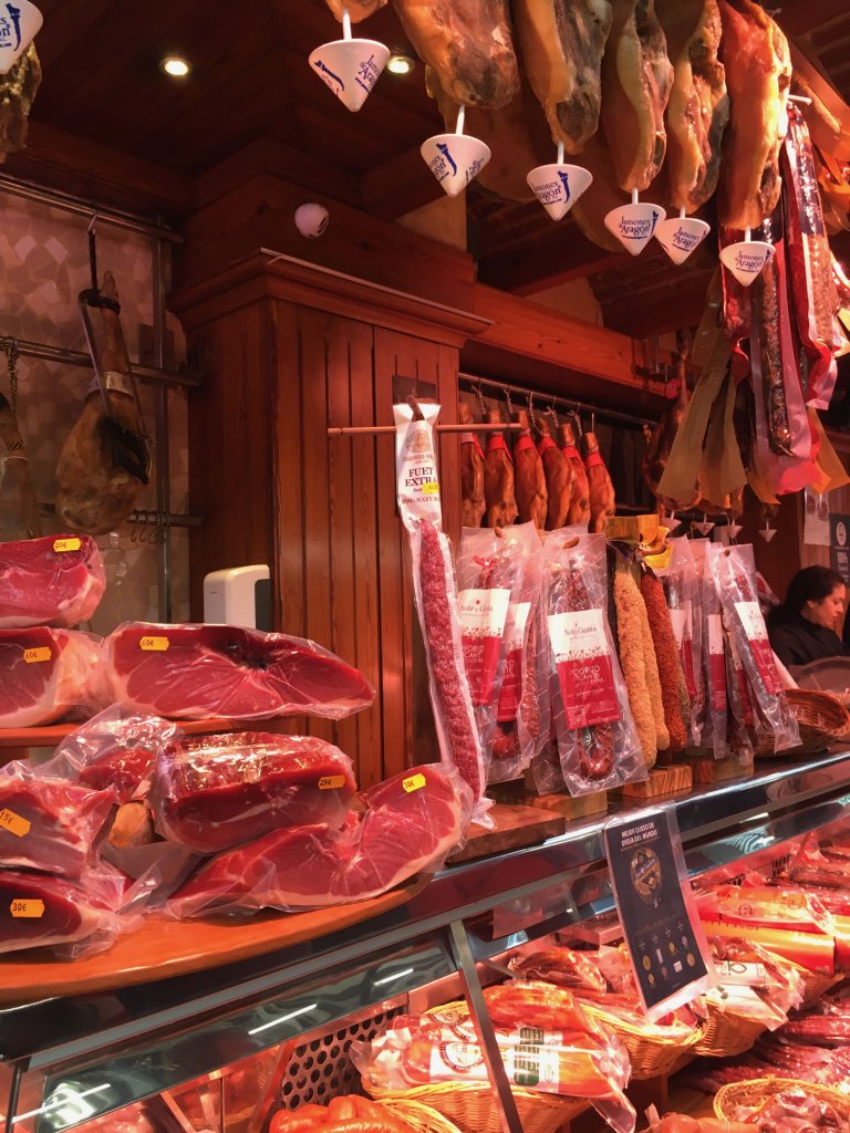 Dry cured Spanish ham is one of the unavoidable delicacies at the market. Entire pig legs hang from shop ceilings, waiting to be cut. Rows of chorizo sausages attract hungry shoppers. Sandwiches of thinly sliced ham are too tempting to pass! In fact, the salted meat slowly melts in the mouth. A perfect snack indeed.