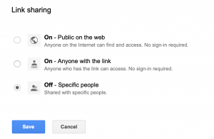 • “On – Anyone with the link” is more secure, since viewers had to get the link to your map.